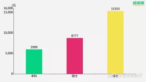 据梧桐果相关数据显示,博士学历层次的岗位薪酬为15355元,硕士学历层次的岗位薪酬为8777元,本科学历层次的岗位薪酬为5999元,相较于硕士学历层次与本科学历层次之间的岗位薪酬差距,博士学历层次与硕士学历层次之间的岗位薪酬差距更大,平均薪酬差达6721元。