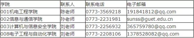 (1)(3)(4)请登录我校研究生招生网(网址:www.guet.edu.cn/yjszs)“下载专区”下载,各学院接收报名申请时间及地点如下: