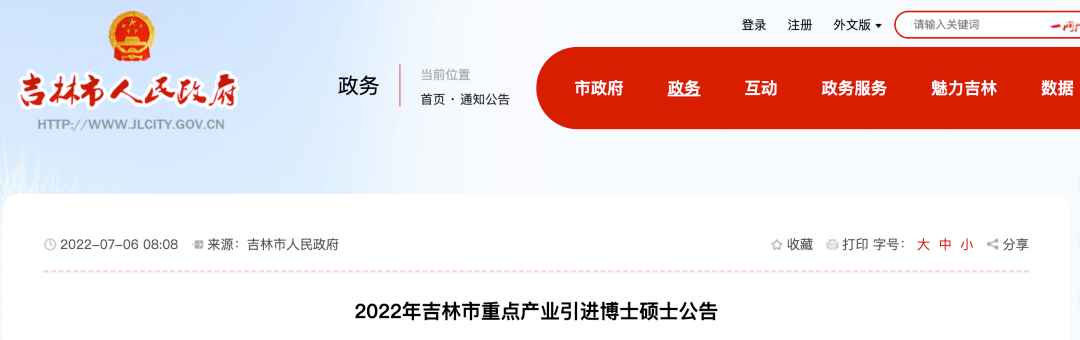 7月6日,吉林市人民政府发布“重点产业引进博士硕士公告”,支持企业面向域外(含吉林市籍且未在吉林市域内企业就业的)引进博士研究生4名、硕士研究生103名。