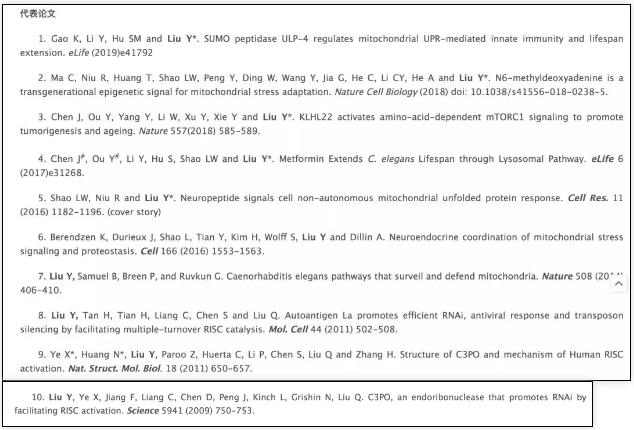 迄今已在Science,Nature,Molecular Cell和Cell Research等权威杂志发表第一和通讯作者论文。目前实验室的研究方向围绕细胞稳态调控,主要集中于线粒体应激的分子机制研究以及细胞在营养物质匮乏时的应激性代谢调控机制。