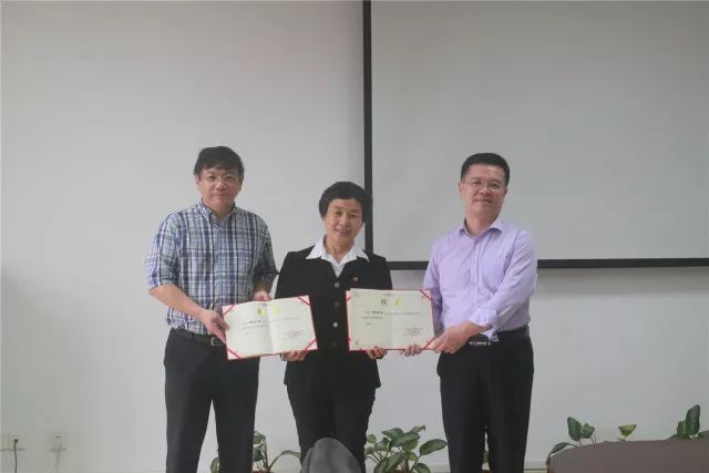 我校副院长赵粤生(右)和会计与金融学院院长叶龙森(左)为曲晓辉教授(中)颁发聘书