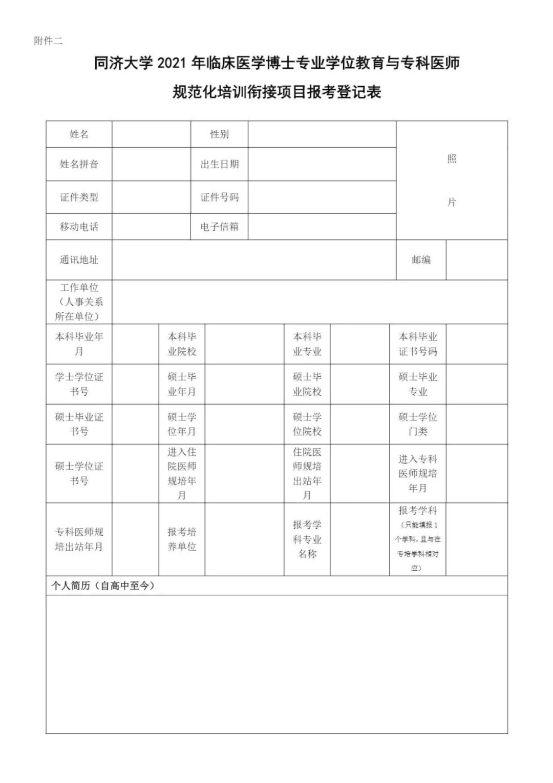 2021年同济大学医学博士专业学位教育与专科医师规范化培训衔接试点项目招生简章